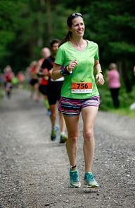 There she is!!! I weaved my way to the front “excuse me, excuse me” then shouted Nat’s name – I really didn’t want to be shouting our team name in a crowded area. I got the wristband from over the barrier, weaved my way back through the crowd and headed off onto the course – finally. After getting round the first bend out of the campsite I hit a hill! There is nothing like a nice steep hill to get the heart rate going so early on. It did flatten out a bit, then went up again. After 1.67 miles I was knackered, I was trying to take it easy but when I looked at my watch and saw I hadn’t even done 2 miles I was a bit worried. But I kept saying “It’s only 5 miles” , “It’s only 5 miles”. I soon got into my rhythm and was enjoying the course, especially flying down the long downhills. At mile 4 I came to Heartbreak hill. I decided to run it if I could, there were a lot of people running part then walking. I managed to steadily run the whole thing, then recover on the flat. I knew from here it wasn’t far and there should be a fun downhill part….it was. It was a single track, soft underfoot with some nice large roots showing which you had to take care over – that will be fun on the night run. The final part was running on the grass through the solo camp area and back round to the start/finish line. All I had to do was hand over the wristband. It’s easy for one person to look out for one person when there aren’t many people around – so when I was looking out for Nat I spotted her easily. It’s harder when one person is staring at a crowd of runners, some waving (are they waving at me??) and some shouting. At first I couldn’t see Zoe and had that brief panic that she hadn’t made it in time. We did have a team vote that if someone hadn’t shown up in time then don’t under any circumstances do another lap, wait or start walking back to the camp. My “panic” lasted all of 2 seconds and then I saw Zoe. Handed over the wristband, and off back to camp for change of clothes, food, drink and chats. Lisa was then getting ready to go for her second lap….already!